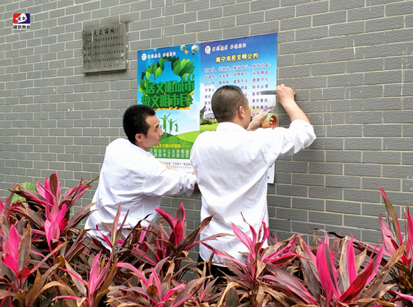 天筑丽城组织张贴创卫城宣传彩页