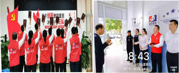 激发“心中有党旗,服务零距离”红色基因 坚决贯彻习近平总书记脱贫攻坚“六个精准”工作要求 广西建凯物业党支部“第一书记”们 肩负使命奔赴各地基层项目 守初心、担使命、勇创新、善作为 带领基层团队开启精准帮扶、攻坚克难的征途 作为建凯物业副总经理、党支部组织委员的夏宗禄 毅然决然接受党组织的重任 肩负着“第一书记”的光荣使命 带领邕宁区滨江幸福、滨江阳光水岸团队 立志和“困难”掰手腕,全心全意为广大业主服务 真正做到“一个党员就是一面旗帜” 发挥着中流砥柱的作用 努力提升项目品质,提高广大业主幸福感 实现“您的满意对我们最重要”服务理念 是我们这一代建凯物业人的使命 也是“第一书记”夏宗禄的使命 武警院校出身的夏宗禄 秉承着忠诚、果敢、善成的精神 积极协调各方关系,善于利用现有资源, 以党员的身份率先垂范 “黄文秀精神"在鼓舞着我 我是共产党员,我必须要冲锋向前” 潜移默化中 “第一书记”用行动改变着小区环境 重塑了物业服务团队的面貌 提升了小区业主的满意度和幸福感 达到改善一个小区、感动每位业主、 提升团队品质的良好效果 向我们展示了新时代共产党员中流砥柱的力量