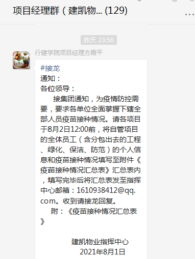 通过工作微信群发布疫情防控、疫苗接种的通知