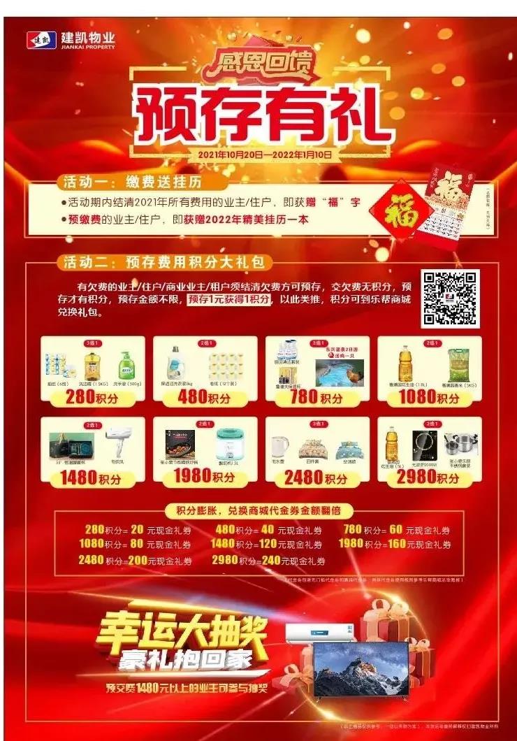 开心哦!建凯物业2021年预存费有礼活动,
