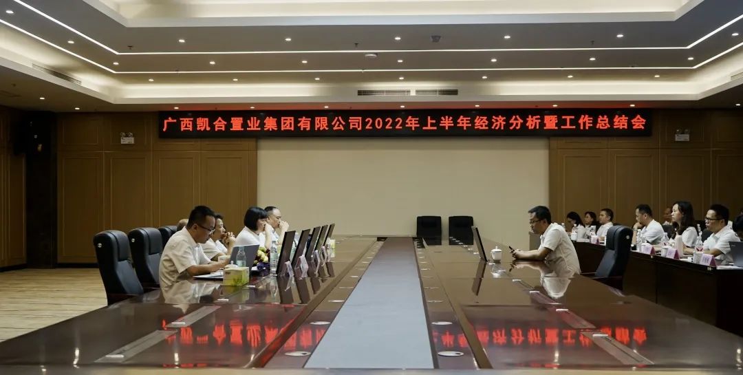 2022年7月1日,在这十分有意义的一天里,广西凯合置业集团有限公司在河池市东兰县拔群干部学院召开2022年上半年经济分析暨工作总结会,全面总结上半年生产经营工作,通过数据找差距,透过分析找问题,研究制定针对性措施和解决方案,确保全年生产目标任务完成。