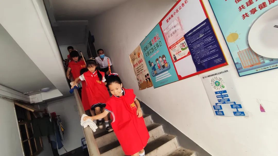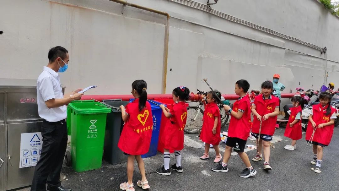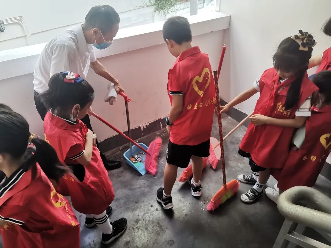 小小保洁员们在物业保洁人员的带领下