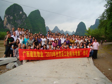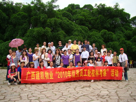 艳阳高照,笑靥如花。2011年5月7日上午9时,公司2010年度的100名优秀员工分乘两辆巴士开始了为期三天的首批桂林考察之旅。通过此次桂林之旅活动平台,来自南宁区域及南宁市外16个分公司的100员工进行了工作经验交流和分享,极大地提高员工工作积极性,加强了团队凝聚力和向心力。参加活动的优秀员工以强烈的荣誉感和自豪感表示,他们将以更加优秀的工作表现和成绩影响和带领其他员工共同提高,服务业主,回报公司和社会,为公司的发展壮大做出新贡献。