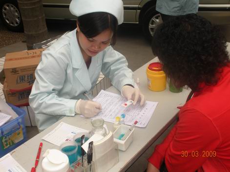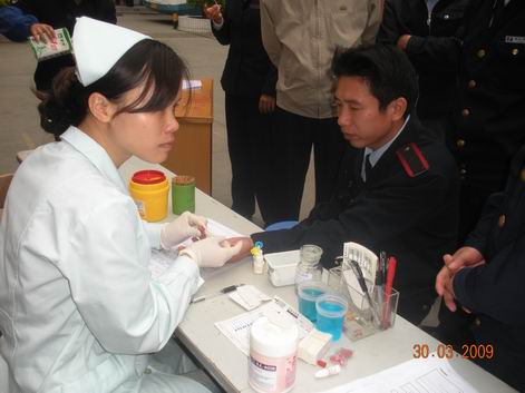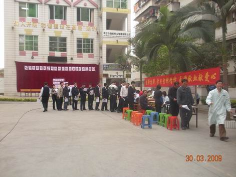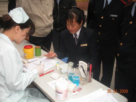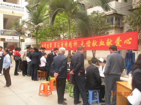 为了弘扬“人道、博爱、奉献”及“能帮就帮” 的南宁精神,推动无偿献血事业的发展,2009年3月30日上午,我公司与南宁中心血站、望州南社区居委会共同开展了“能帮就帮,学习雷锋精神,无偿献血献爱心”主题活动。8时30分,我公司参加无偿献血的员工、社区工作人员及社区居民就已在望州南小区广场排起了长队,填表、验血、采血工作紧张而有序地进行着,参加献血的100余人经过严格筛选,其中52人通过了筛选。南宁市建凯物业管理有限公司总经理助理王荣祥从2000年开始献血,到现在已献血10多次,这次他再次献血200毫升。
