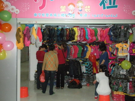 当日上午10时许,记者在现场看到,刚刚开业的桂登商场三层儿童用品批发中心内人来人往,人气相当旺。在批发中心8091号“开心e代”商铺内,记者见到了正在订购童装的刘女士,这名专程前来订货的扶绥老板忙得一身汗。当天,她已订购了300套婴儿装、100套中号童装、100套大号童装,及数十件儿童玩具。“真没想到这里品种这么齐全。”刘女士说,她过去到南宁批发童装,订购同样多的货几乎要跑上一整天,现在专业儿童用品批发市场内,她只花了1个小时就搞定了。