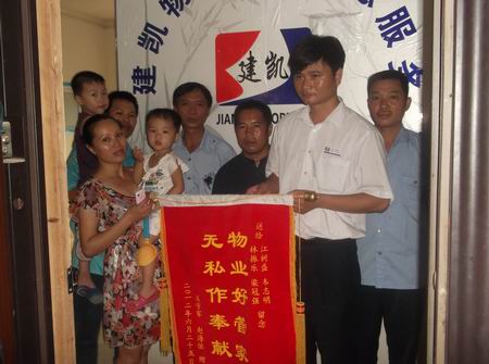2012年6月21日20时左右, 龙江半岛花园物业服务中心值班人员江树盛巡逻时,发现有一名3岁左右的小孩哭得很伤心,经询问得知小孩迷路了。当班班长韦志明、队员林振乐闻讯后前来帮助,并及时通知服务中心主任梁冠强前来处理。韦志明、林振乐和梁冠强带着小孩在各区及工地的施工家属进行走访,于23时左右联系到了孩子的父母。