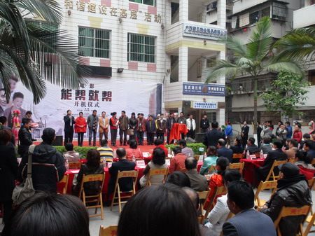 2011年12月19日上午9时,电影《能帮就帮》开机仪式暨新闻发布会在南宁市望州南小区广场隆重举行。广西壮族自治区宣传部、南宁市宣传部、南宁市兴宁区街道办、望州南社区、望州南小区的居民以及建凯物业公司的部分员工出席了开机仪式。在开机仪式上,《能帮就帮》的电影主创人员悉数亮相,体现了强大的创作阵容。该片由广西作家刘正军编剧,以望州南小区“能帮就帮”的真实事例为原型,反映了望州南社区“巾帼志愿者服务队”热心助人的真实感人事迹。