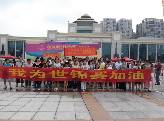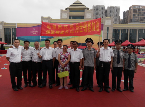 2014年7月27日,广西建凯物业服务有限公司员工和望州南社区一起为南宁体操世锦赛加油助威,预祝南宁体操世锦赛成功、圆满举行。建凯人要以实际行动,在日常工作中,搞好所辖小区清理、清洁等工作,以干净、整洁的面貌迎接各国宾朋。
