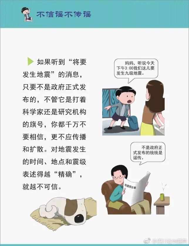 真觉得有必要再给大家科普一下! 一、准备家庭地震应急包(手电、收音机、矿泉水、急救医药品等),放在便于取到之处。 二、发生地震时不要慌乱冲出房间,更不要选择跳楼逃跑,尽可能关闭电、火、煤气。 三、如果你在室内,应就近躲到坚实的家具下,如写字台、结实的床、农村土炕的炕沿下,也可躲到墙角或管道多、整体性好的小跨度卫生间和厨房等处。 四、主震后要尽快离开房间,疏散到空旷地带或应急避难场所,以防余震。 五、如果你在室外,要尽量远离狭窄街道、高大建筑、高烟囱、变压器、玻璃幕墙建筑、高架桥和存有危险品、易燃品的场院所。 六、在高层先不要逃跑,应躲到两个承重墙间最小的房间,如厕所、厨房或房间内侧墙角。 七、在街上,不要在高楼下、广告牌下、桥头等危险地方停留。 八、如果你在行驶的汽车、电车或火车内,应抓牢扶手,以免摔伤、碰伤,同时要注意行李掉下来伤人。 九、不要听信谣言,不要轻举妄动,为防止混乱,每个人依据正确的信息,冷静地采取行动。