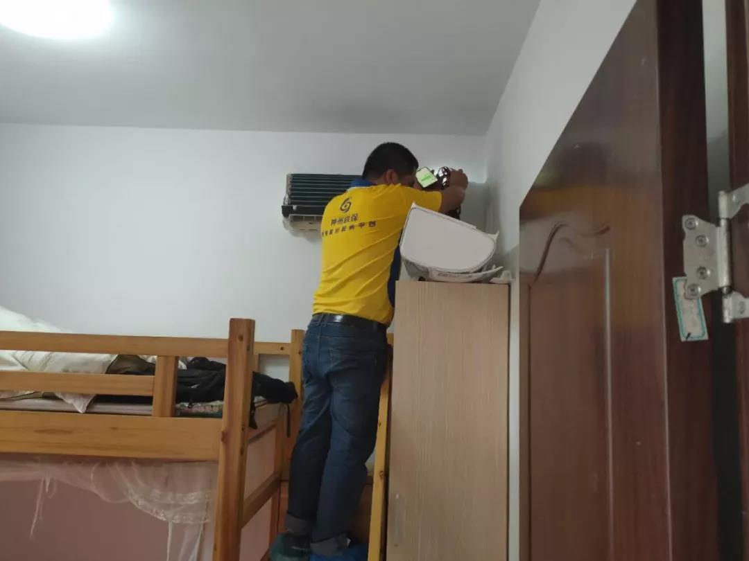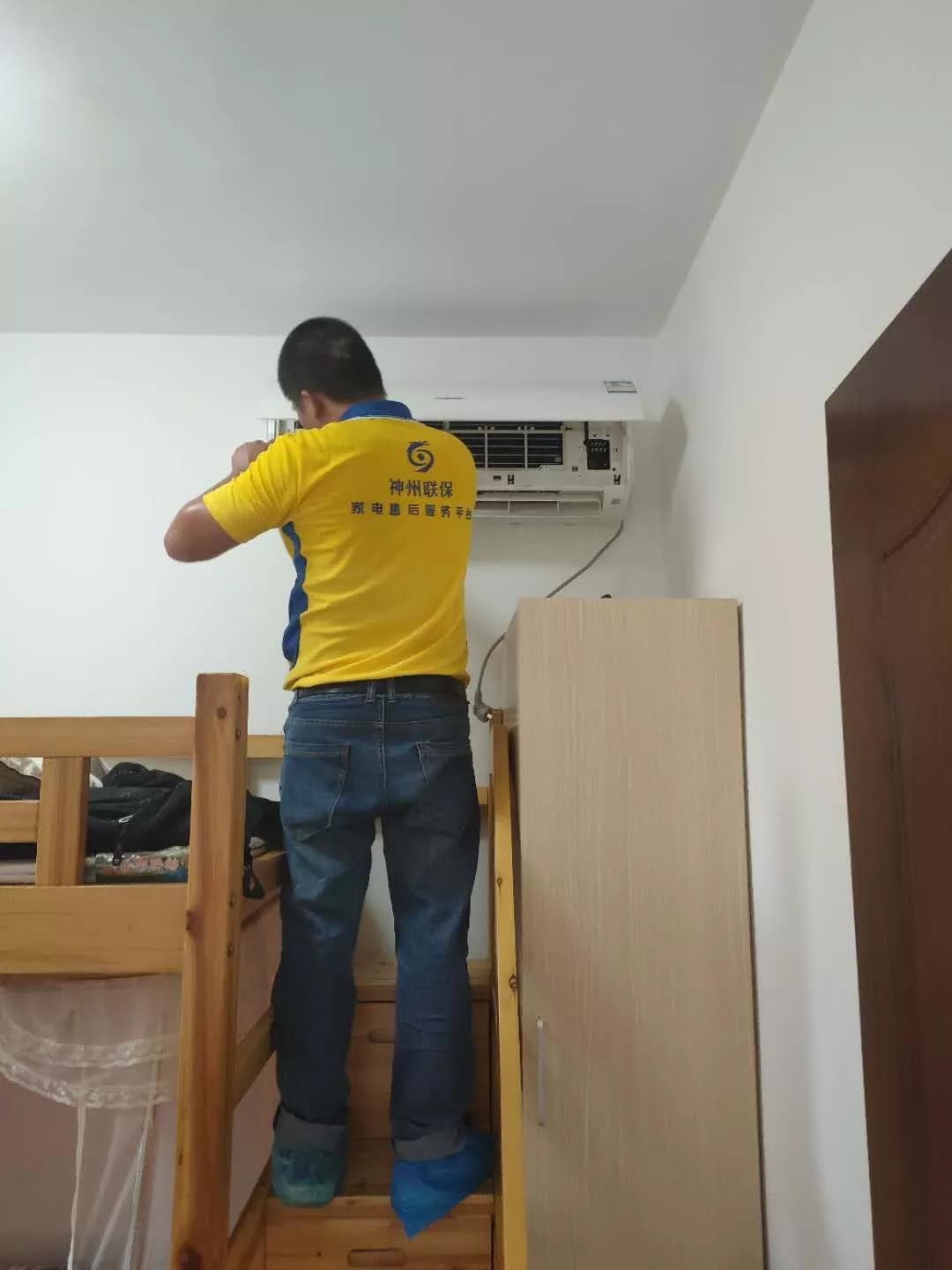 专业师傅在清洗空调