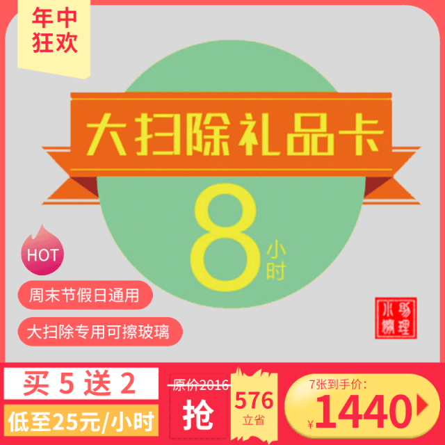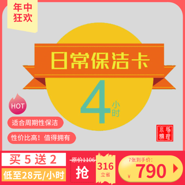 买5张4/8小时保洁卡送2张等值的4/8小时保洁卡