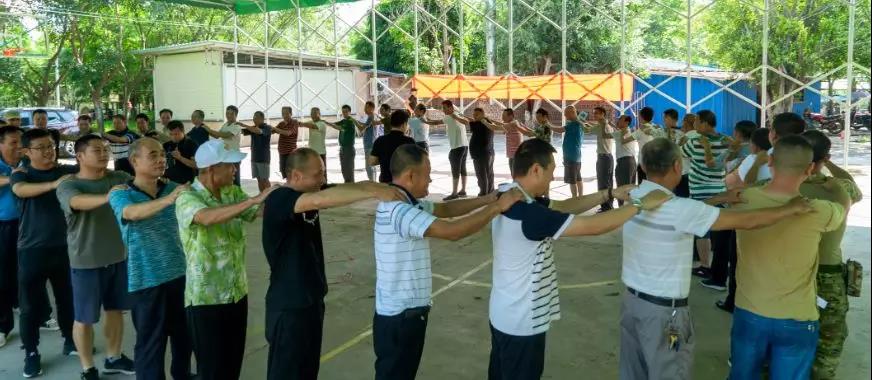 7月31日上午,天气晴朗,艳阳高照,10点半左右,我们一行抵达竹泉岛绿源山庄。建凯物业公司总经理晏军如发表讲话,希望军人同志们在工作中继续发扬不怕苦、不怕累,敢于作战的精神,充分展现物业人勇于担当、敢于奉献的优秀品质。紧接着由教官为大家开场热身、进行预热。过程中,在此敞开心扉、打破坚冰、开放自我,并分为4个小组形成一个团队,建立团队文化,各自小组经过商讨推选团长和政委,设立团歌、口号和造型,通过团队成员之间的有效沟通,展示团队文化,增强彼此之间的信任与合作。