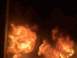 先别说浓烟,火场中心温度达1000度以上,周边温度几百,这能跑过去么?跑过去得烧成什么样?