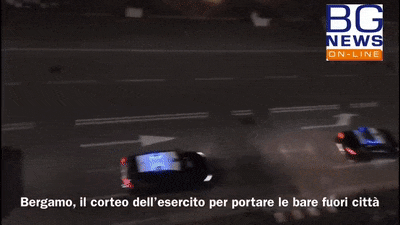 甚至因为死亡的人数过于庞大,意大利不得已派出了军方的车辆来运送尸体出城火化,整整70辆,却依旧未能解决问题。
